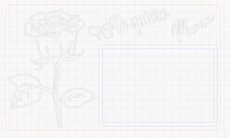 Ahora toca reproducir este proyecto en el software de corte Laser, para ello, nos vamos a valer de hacer cuadros y redondearle las esquinas, para el marco principal y vamos a importar y trazar la forma de la flor.