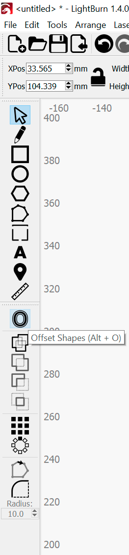 Seleccionando el texto que queremos "Offsetear" pinchamos sobre el icono en la barra de la izquierda llamado Offset Shapes y en cuadro de diálogo que nos aparece le marcamos la distancia de 1mm, con esto será suficiente para que gane grosor y no se nos rompa a la primera.
