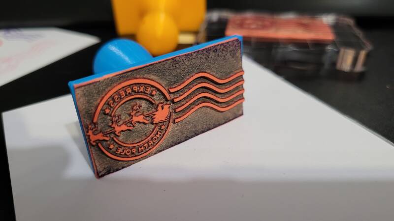 Pegamos con cianocrilato la pieza de caucho a la pieza de PLA de nuestra impresora 3d y ya tenemos el sello listo para estampar
